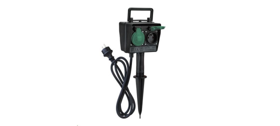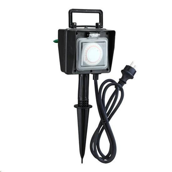Solight zahradní sloupek IP44, 2 zásuvky + časový spínač, gumový kabel 1,5m