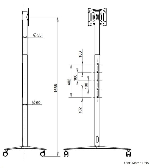 Popis Špičkový stojan na televizory a monitory 19-46", nosnost 30kg, OMB Marco Polo - držák