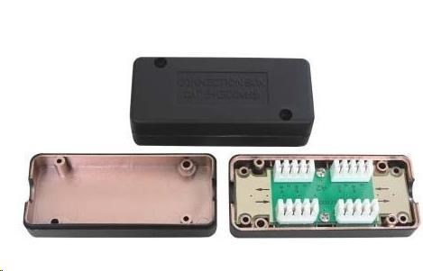 Spojovací box SB-STP-C6A-BK je určen pro profesionální i domácí síťová řešení, kde je potřeba propojit segmenty Cat6A kabelů. Díky narážecím kontaktům je instalace rychlá a spolehlivá, bez nutnosti pájení nebo složitého nářadí. Pokovené stínění zajišťuje minimální elektromagnetické rušení a vysokou kvalitu přenosu dat. Box je kompatibilní s krone svorkovnicemi a je vhodný pro systémy vyžadující vysokorychlostní připojení až do 10 Gbit/s.