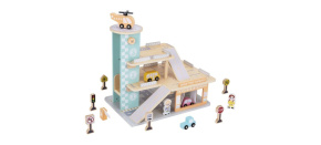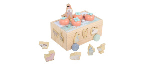 Barevná dřevěná skládací věž ve tvaru lvíčka, která rozvíjí jemnou motoriku, logiku a koordinaci dětí.
