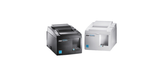 receipt printer, direct thermal (two-colour), 8 dots/mm (203 dpi), variable paper width (58/80 mm), print width (max.): 72 mm, speed (max.): 250 mm/s, Bluetooth, cutter, Star, incl.: cable, power cable, wall bracket, receipt roll, Treiber CD, colour: white.
