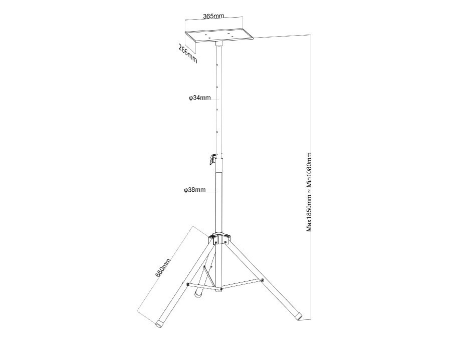 Stativ na projektor Fiber Mounts M9C53 Stativ na projektory s nastavením výšky od podlahy 108-185cm, polička 365x266mm, nosnost 8kg Podlahový stojan nejen na projektory s policí o rozměrech 365x266mm, u které si snadno nastavíte požadovanou výšku v rozmezí 108cm až 185cm od podlahy. Rychlé sestavení, bez potřeby jakéhokoliv nářadí. Stojan je ve složeném stavu velmi skladný a lehký, ideální i pro časté přenášení nebo převoz. Barevné provedení černé, záruka 3 roky. Technické údaje: nosnost 8kg nastavitelná výška od podlahy 1080-1850mm polička s rozměry 365x266mm snadné a rychlé sestavení bez nářadí barevné provedení černé záruka 3 roky. Fiber Mounts s.r.o., Nádražní 1296/4 69601 Rohatec Česká republika, mailto: info@drzakyastolky.cz