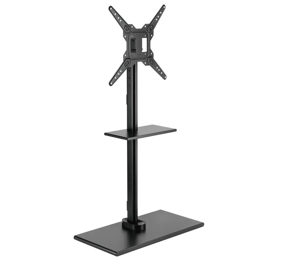 Podlahový stojan / stolek na TV i monitory 23" - 55", nastavení výšky 868 / 908 / 948 / 988 / 1028 / 1068mm, náklon +6° / -6°, podstava 700 x 350mm, polička 380 x 190mm s nastavitelnou výškou 220 - 770mm, instalační materiál, vedení kabeláže, VESA 100x100 až 400x400, nosnost 35kg