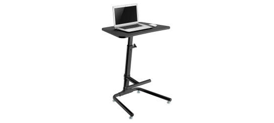 Stolek na notebook laptop Fiber Mounts M8C49B Stolek na notebook nebo laptop, snadné nastavení výšky pro práci vsedě nebo vestoje 77-120cm, rozměr stolku 708x464mm, drážka na tablet, podnož s nastavením výšky 100-530mm, rozměr podstavy 596x516mm, nosnost 8kg Velmi pěkný, stabilní a spolehlivý stolek na notebook, laptop nebo iPad. Výškové polohování od 77cm do 120cm je extrémně snadné díky vztlakové pružině - nahoru vyjíždí velmi lehce a pokud chcete výšku snížit, stačí povolit jistící matici a zatlačit na horní desku. Konstrukce je osazena podnoží s výškovým nastavením od 10 do 53cm - pokud na stolku podnož nechcete, nemusíte ji instalovat. Velmi pěkné provedení v černé barvě. Stolek můžete využít i jako pracovní stanici, prodejní pultík, podstavu na projektor, je vhodný taktéž na prezentace nebo výstavy, do stánků atp. Stolek má vynikající stabilitu díky postavci o rozměrech 596x516mm osazeném 4 protiskluzovými nožičkami a poctivé velmi pevné konstrukci. Maximální doporučené zatížení horní desky z MDF je 8kg. Na stolek poskytujeme prodlouženou záruku na 5 let. Stolek na notebook nebo laptop s nastavením výšky, snadná změna pozice pro práci vsedě nebo vestoje, podnož, pevná konstrukce, stabilita a spolehlivost - Fiber Mounts M8C49B Technické údaje: nosnost 8 kg rozměry horní desky 708 x 464 mm velmi rychlé a snadné nastavení výšky stolku díky vztlakové pružině nastavitelná výška stolku 77 až 120 cm možnost práce vestoje nebo vsedě - extrémně rychlá změna pozice nastavitelná výška podnože 10 až 53 cm podnož nemusí být na stolku, je odnímatelná špičková poctivá konstrukce rozměry podstavy 596 x 516 mm protiskluzové nožky na podstavě s vyrovnáním dle podlahy vynikající stabilita a bezpečnost barevné provedení černé nebo bílé záruka 5 let Výškové nastavení stolku na notebook je extrémně snadné a rychlé díky zabudované pružině - Fiber Mounts M8C49B Praktický společník pro Vaše prezentace, výstavní stánky, kanceláře nebo domácnosti, vhodný i do malých prostorů. Stolek vyniká spolehlivou konstrukcí, která je přitom velmi pěkná. Díky snadné výškové polohovatelnosti (vztlaková pružina) můžete kdykoliv pracovat vsedě nebo naopak vestoje. Určitě oceníte i praktickou podnož, kterou lze taktéž výškově regulovat, v případě potřeby ji můžete i ze stolku demontovat. Spolehlivé, praktické a pěkné řešení pro Vaši práci na notebooku..