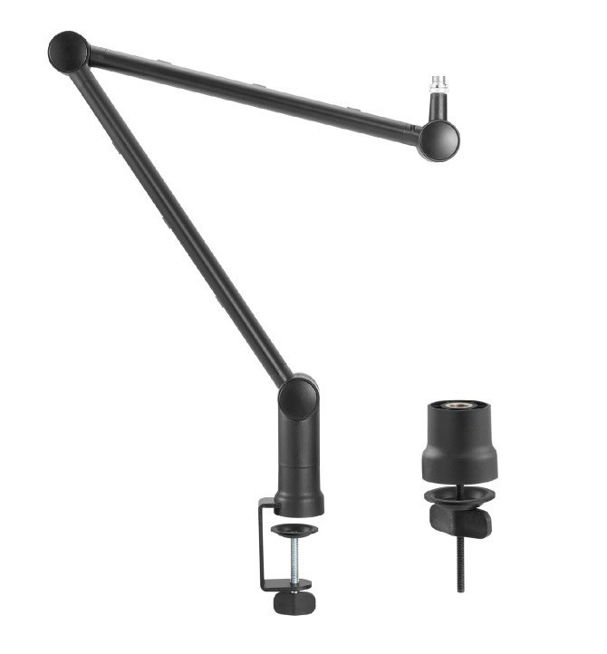 Univerzální kloubový držák mikrofonu, stylová a stabilní hliníková konstrukce, standardní montáž na závit 3/8 " nebo 5/8", integrované vedení kabelu. Nosnost 1 kg. Max. výškový rozsah 949 mm. Délka ramene 825 mm. Úhel otočení 360°.Více