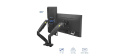 Stolní držák na 2 monitory displeje NB F160 Stolní držák na zavěšení 2 monitorů 17-30", nezávislé nastavení každého monitoru, výškové polohování 140-400mm, otáčení do stran +/-180°, naklápění +85°/-30°, vzdálenost od úchytu 0-530mm, pivot +/-360°, VESA 75x75 a 100x100, nosnost 18kg Vynikající stolní držák na monitory a menší televizory v profesionální kvalitě, krásném designu, s mnoha nadstandartními možnostmi nastavení. Otáčení obrazovky do stran, náklon nahoru i dole ve vysokém úhlu, nastavení vzdálenosti od uchycení, korekce roviny obrazovky, horizontální nebo vertikální otočení obrazovky, systém skrytého vedení kabeláže. Výškové nastavení až 400mm, výšková regulace 260mm - velmi snadná manipulace. To vše v unikátním designu. Držák má velmi odolnou a bezpečnou konstrukci a je vhodný i do velmi vytížených provozů, kde je potřeba neustálé manipulace. Stolní držák na 2 monitory NB F160 NB F160 kvalitní dvoumonitorový držák na stůl, polohovatelný Držák je díky možnosti plné nastavitelnosti, profesionální konstrukci a pěkného designu vhodný pro velmi široké spektrum využití. Doporučujeme jak do domácností, tak kanceláří, pracoven, školních tříd, nemocnic, call center, IT pracovišť, provozů a firem. Stolní multimonitorový držák NB F160 - nezávislé zavěšení 2 monitorů na stolní držákKancelářský stolní držák na 2 pc monitory v TOP kvalitě a designu - NB F160 Technické údaje: nosnost 18kg podporuje VESA standarty 75x75 a 100x100 doporučujeme na monitory a televizory s úhlopříčkou 17" až 30" otáčení na obě strany +180° až -180° nastavení výšky monitorů 140-400mm náklon monitorů +85°/-30° vzdálenost od stolního uchycení 0-530mm horizontální i vertikální otočení obrazovky - funkce pivot +/-360° systém pro vedení kabeláže profesionální držák vysoké kvality 2 typy uchycení na stolovou desku - na okraj nebo skrz stolovou desku 10-90mm záruka 5 let Kancelářský držák na dva monitory NB F160 Kvalitní polohovací držák na monitory do kanceláře NB F160 Kancelářský stolní držák NB F160 podporuje VESA standarty: VESA 75x75 VESA 100x100.