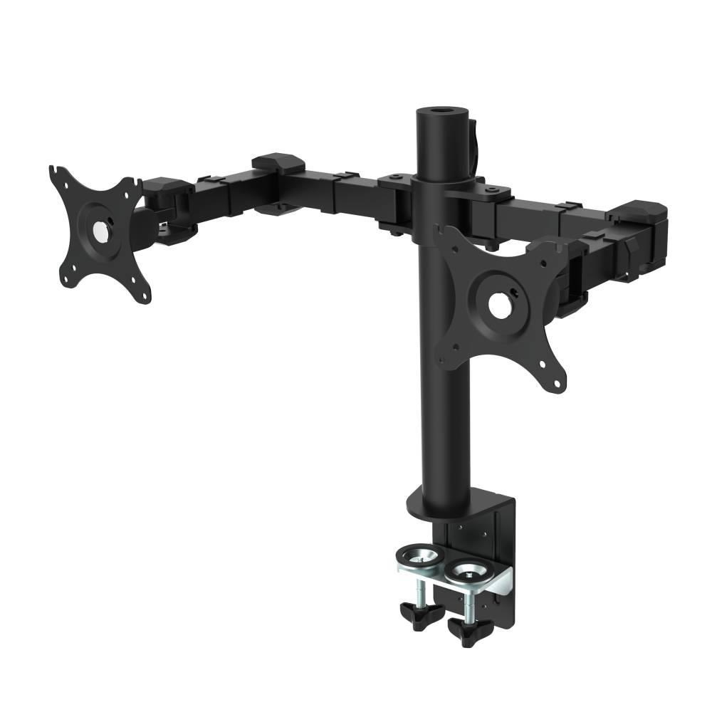 Držák je vyroben z odolné oceli a je určen k upevnění na okraj stolové desky o tloušťce 20 až 100 mm. To zajišťuje spolehlivé a pevné uchycení. Další výhodou je integrovaný systém vedení kabeláže, který pomáhá udržet pracovní plochu čistou a organizovanou. Tento držák je ideální volbou nejen pro domácí kanceláře, ale i pro náročné provozy, jako jsou školní učebny, nemocnice nebo výrobní haly.