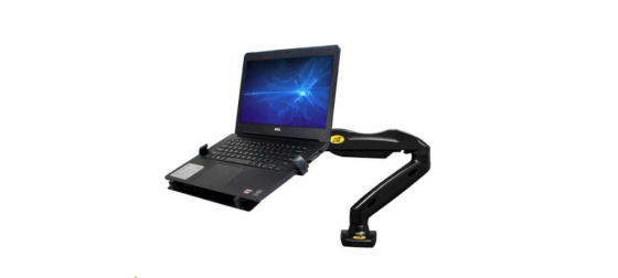 Stolní držák na notebook - Fiber Mounts 764F80 Kvalitní polohovatelný stolní držák na notebooky, otočný, sklopný, délkově a výškově nastavitelný, nosnost 9kg Unikátní systém pro uložení notebooku a jeho snadnou a rychlou polohovatelnost. Držák Vám umožní notebook výškově polohovat, otáčet do stran, měnit místo na stole kdykoliv, snadno, rychle a pohodlně. Držák je velmi přívětivý ohledně nastavitelnosti. Vhodný je pro uložení jakéhokoliv notebooku s hmotností až 9kg. Na držáku jsou krytky pro možnost skrytého vedení kabeláže. Fiber Mounts 764F80 - stolní držák na notebooky, polohovatelný, otočný, sklopný, výškově a délkově nastavitelnýKancelářský stolní držák na notebook Fiber Mounts 764F80 Možnost uložení notebooku uvítá každý, kdo pracuje denně s notebookem - nastavení polohy obrazovky notebooku do úrovně očí (účinné proti bolesti zad, páteře a hlavy). Možnost kombinovat i s držákem monitoru F80 a v případě používání druhého monitoru sjednotit výšku obrazovky notebooku s monitorem. Technické údaje: max. zatížení 9kg uložení jakéhokoliv notebooku rozměry úložné police: výška 280mm, nastavitelná šířka úchytek 240-390mm boční a spodní zarážky pro stabilizaci notebooku, protiskluzové podložky výšková polohovatelnost 260mm otáčení do stran bez omezení nastavení náklonu rychlá a snadná změna polohy notebooku na stole uchycení držáku na hranu stolové desky nebo skrz stolovou desku šroubem vynikající kvalita systém pro skryté vedení kabeláže barva černá záruka 3 roky.