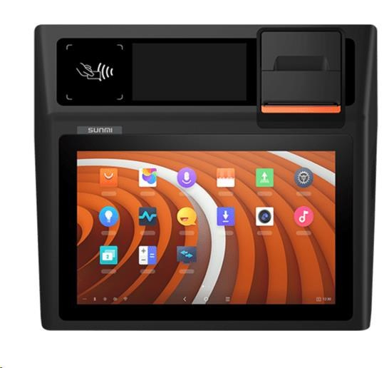 POS System, retail, Touchscreen, capacitive, 25,7cm (10,1''), resolution: 1280x800 pixels, RAM: 2 GB, Flash: 8GB, USB (5x), RS232, Bluetooth, Ethernet, Wi-Fi (802.11b/g/n), drawer kickout, audio, 4G (LTE), Micro SD-Slot, customer display, integrated receipt printer (58mm), Android (8.1), incl.: power supply unit, power cable (EU), colour: black, orange.