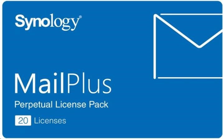 Seznam podporovaných NAS Synology Informace o licenčních balíčcích pro službu MailPlus Služba Synology MailPlus se dodává s 5 bezplatnými poštovními účty a umožňuje přidávat další účty pomocí dalších zakoupených licencí. Nabízíme dva druhy licenčních balíčků odpovídajících vašim potřebám: 5 nebo 20 jednotek e-mailových účtů, v obou případech s trvalou platností. Zahrnuté licence lze použít pouze v jednom zařízení Synology NAS a po aktivaci je nelze migrovat do jiného zařízení Synology NAS. Poštovní aliasy se navíc nepovažují za e-mailové účty a proto nevyžadují ke svému používání žádné licence.