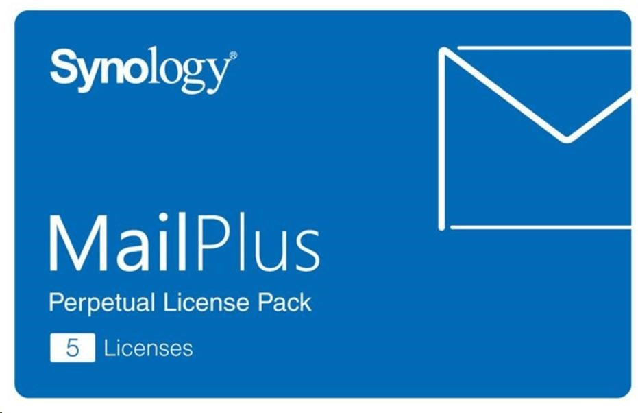 Seznam podporovaných NAS Synology Informace o licenčních balíčcích pro službu MailPlus Služba Synology MailPlus se dodává s 5 bezplatnými poštovními účty a umožňuje přidávat další účty pomocí dalších zakoupených licencí. Nabízíme dva druhy licenčních balíčků odpovídajících vašim potřebám: 5 nebo 20 jednotek e-mailových účtů, v obou případech s trvalou platností. Zahrnuté licence lze použít pouze v jednom zařízení Synology NAS a po aktivaci je nelze migrovat do jiného zařízení Synology NAS. Poštovní aliasy se navíc nepovažují za e-mailové účty a proto nevyžadují ke svému používání žádné licence.