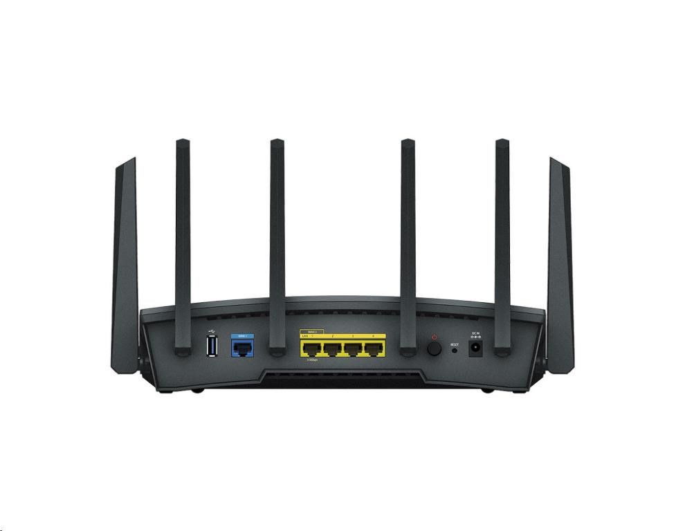 Třípásmový směrovač RT6600ax, založený na novém standardu Wi-Fi 6, nabízí přenosovou rychlost až 6,6 Gb/s v kombinovaném bezdrátovém provozu. Jeho tři rádia spolupracují s konfigurovatelným portem 2,5GbE WAN/LAN a zajišťují tak maximální rychlost připojení jednotlivých zařízení. Směrovač RT6600ax, řízený naším neustále se vyvíjejícím operačním systémem Synology Router Manager, je navržen tak, aby zjednodušil zabezpečení a správu sítě.