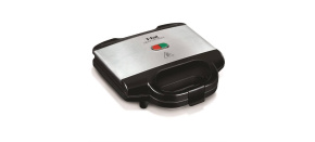 Toustovač 2v1 s příkonem 700 W, materiál pláště nerez, indikátor připravenosti k použití, vyměnitelné plotny s nepřilnavým povrchem, plotny pro přípravu trojúhelníkových toustů a vaflí součástí balení, vyměnitelné části vhodné do myčky, izolovaná rukojeť s bezpečnostní západkou, barva černá a nerez.