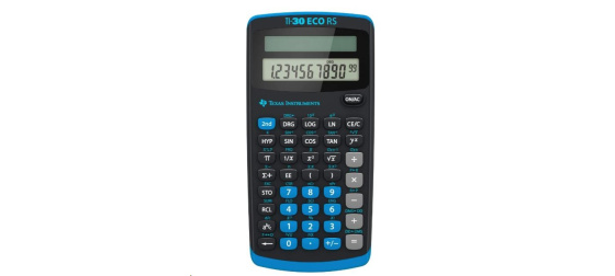 TI-30 ECO RS je vybaven jednořádkovým desetimístným displejem, který přehledně zobrazuje výsledky. Pokrývá širokou škálu matematických a přírodovědných funkcí.