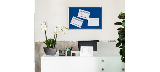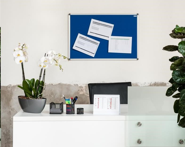 Moderní textilní nástěnka AVELI má vysoce odolný povrch proti poškození při práci s napínáčky a špendlíky. Má lehkou konstrukci a elegantní rám z kvalitního eloxovaného hliníku. Nástěnka má moderní plastové uzávěry, které zakryjí upevnění na zeď.