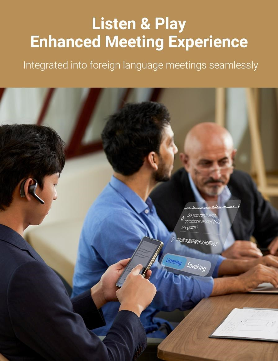 *Překlad online meetingů a médií do 500 minut měsíčně zdarma. Moznost dokoupení minut v aplikaci dle podmínek výrobce. Překlad 1 na 1 a překlad „listen & play“ není zpoplatněn ani omezen.