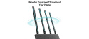 | WiFi Range | 3 Bedroom Houses 4× Fixed High-Performance Antennas Multiple antennas form a signal-boosting array to cover more directions and large areas Beamforming Concentrates wireless signal strength towards clients to expand WiFi range |