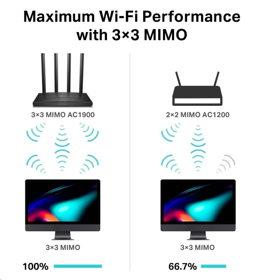 Archer C80 poskytuje vysoce výkonné a dostupné domácí Wi-Fi s celkovou rychlostí až 1900 Mb/s. Zpracovává jednoduché úkoly, jako je odesílání e-mailů nebo procházení webu v pásmu 2,4 GHz a úkoly náročné na šířku pásma, jako jsou online hry nebo streamování v rozlišení 4K/8K UHD v pásmu 5 GHz - vše bez zpoždění.