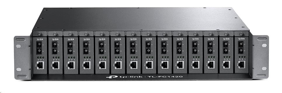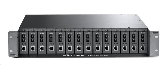 14slotové rackové šasi TL-FC1420 je speciálně určeno pro usazení 14 média konvertorů od společnosti TP-Link pro zajištění centrálního napájení, čímž šetří místo a napájecí kabely. Nepřetržitý provoz je pro komunikaci přes optické vedení velmi důležitý, proto je šasi vybaveno volitelným redundantním napájecím zdrojem a funkcí výměny za provozu, které umožňují instalaci / odebrání konvertoru bez vypnutí napájení šasi. Pro stabilizaci provozního výkonu a prodloužení životnosti jsou navíc uvnitř instalovány dva chladicí větráky. Společně s řadou FC média konvertorů Gigabit / Fast Ethernet představuje zařízení TL-FC1420 ideální řešení pro vaši síť vyžadující převod médií. * Zařízení TL-FC1420 podporuje TP-Link média konvertory TL-FCXXX verze 1.0 a vyšší. ** TL-MCRP100 V2 lze použít jako redundantní napájecí modul v šasi TL-FC1420.