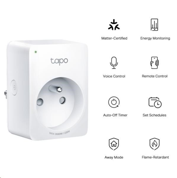 Miniaturní design umožňuje umístění zásuvky i v těsně vedlejších pozicích bez omezení prostoru. Přes aplikaci Tapo lze zásuvku ovládat odkudkoli, vytvářet plány zapínání a vypínání, nastavit automatické vypnutí či využít režim nepřítomnosti, který simuluje přítomnost v domácnosti.
