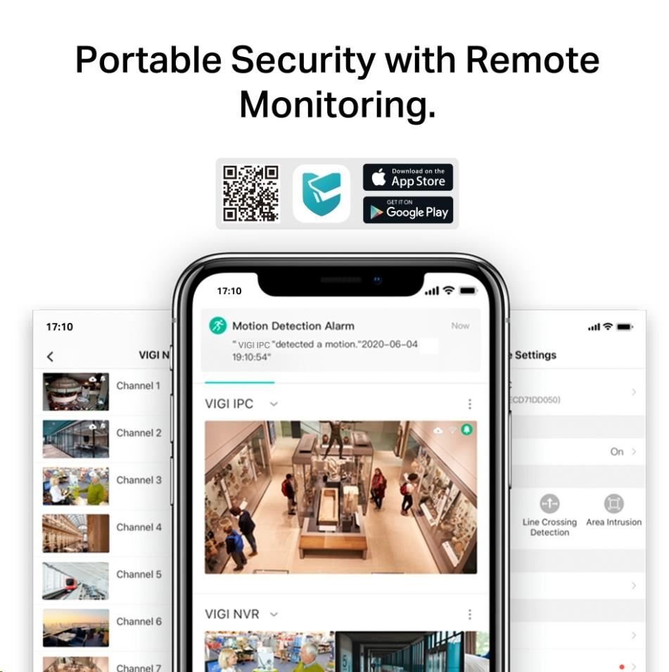 Kamera umožňuje napájení přes PoE+ nebo klasickým 12 V DC adaptérem a je plně spravovatelná přes mobilní aplikaci TP-Link VIGI, díky které máte dohled vždy na dosah ruky.