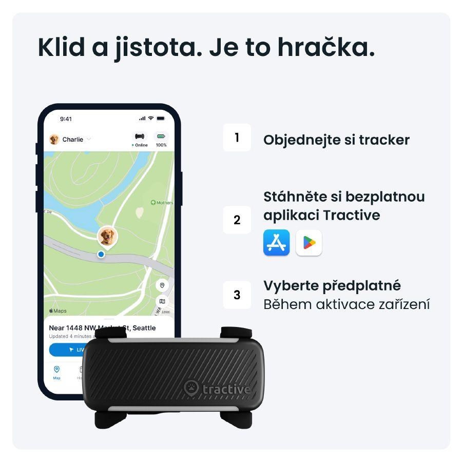 *Cena s předplatným na 2 roky a jednorázovou platbou předem. Ceny se mohou změnit. Nejnovější informace najdete na adrese tractive.com/plans.