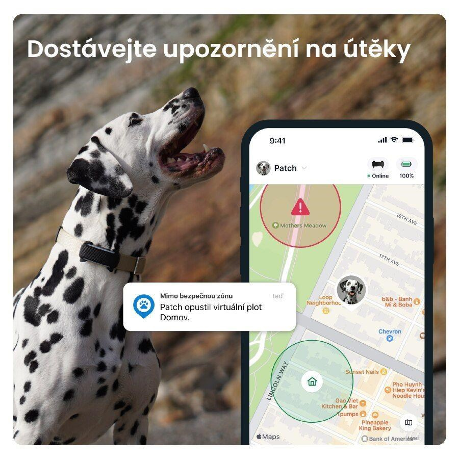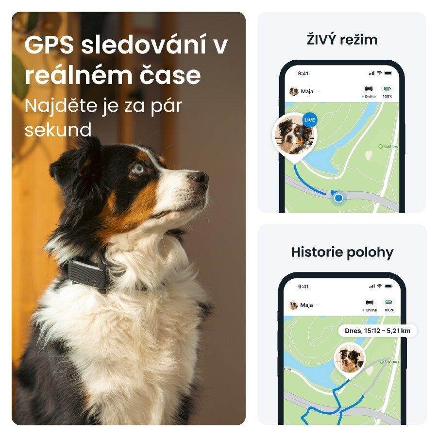 Živé GPS sledování a upozornění na útěky Zdravotní upozornění a sledování aktivity Novinka: sledování štěkání Silnější světlo a zvuk 100% vodotěsný GPS tracker pro psy funguje s aplikací, která je k dispozici pro systémy iOS i Android Baterie vydrží až 10 dní a plně se nabije za necelé dvě hodiny Nízká hmotnost Pasuje na většinu psích obojků a postrojů Kompatibilní s Android 9.0+, iOS 16+ Rozměry: 71 × 29 × 17 mm Hmotnost: 39 g Barva: černá Aktivace GSM služeb