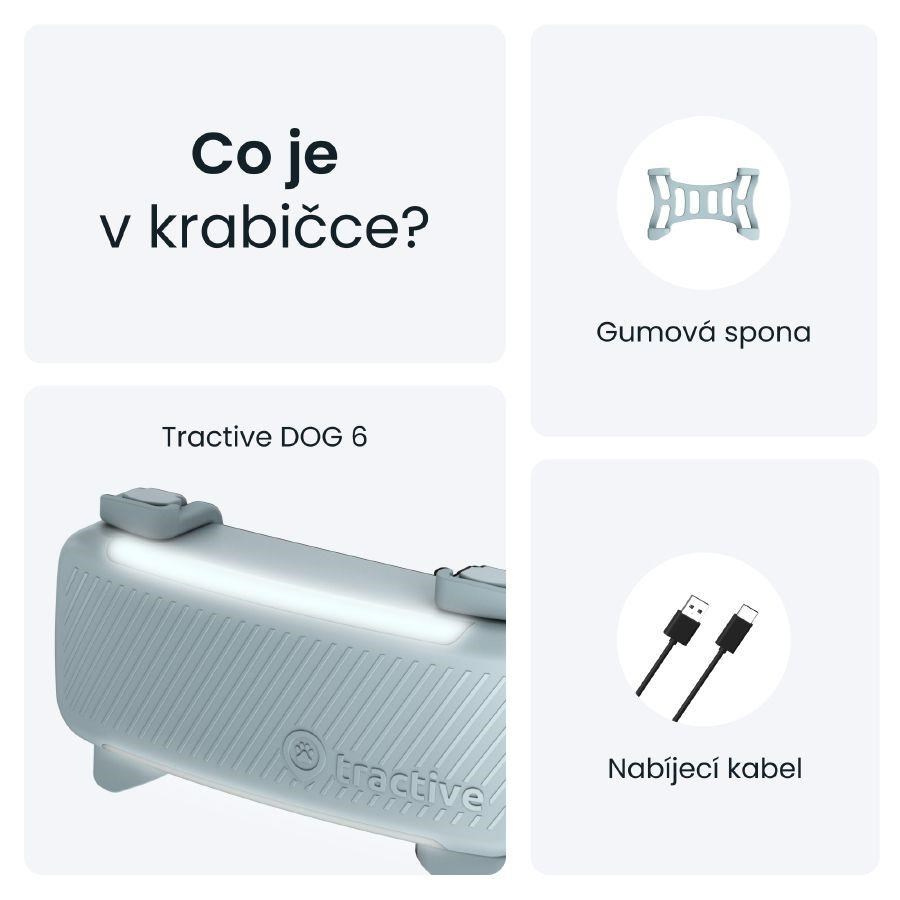 Tractive GPS tracker pro psy Systém uchycení na obojek Nabíjecí kabel Dokumentace