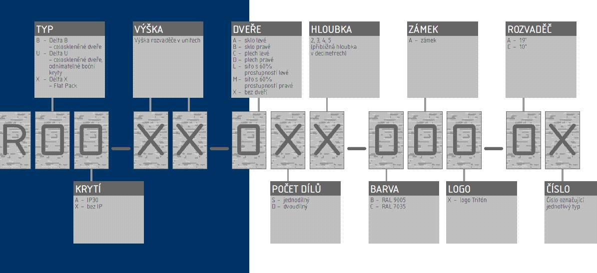 Rozvaděč Delta B je celosvařený nástěnný jednodílný rozvaděč s celoskleněnými dveřmi, které je možné díky masivním pantům otevřít pod úhlem téměř 180°. Důležitou součástí výrobku jsou otvory pro kabely, které jsou umístěny na horní a dolní stěně. Další dva otvory jsou umístěny na zadní stěně rozvaděče. Otvory jsou zaceleny vylamovacími záslepkami, které je možné vylomit s pomocí např. šroubováku. 19“ zařízení se instalují na vertikální lišty, které je možné plynule natavit podle potřeby do hloubky těla rozvaděče. Díky perforaci je zajištěna přirozená cirkulace vzduchu a chlazení komponentů. Přesné rozměry a další technické údaje jsou uvedeny níže (hodnoty R1 a R2 označují rozteče montážních otvorů pro zavěšení rozvaděče na zeď). Maximální zatížení rozvaděče je 30 kg. Rozměry: A – 900 mm B – 795 mm C – 490 mm D – 600 mm E – 395 mm R1 – 854 mm R2 – 420 mm Hmotnost – 26,6 kg Příbal: Klíč - přední dveře 2x Vrut 6x50 4x Podložka 6,6 4x Hmoždinka 10 4x Plastová podložka 8x Plovoucí matice M6 8x Šroub M6x16 8x Protiprachová záslepka 1x. Triton CZ s.r.o., Drahobejlova 1832/51, 190 00 Praha 9, Česká republika, obchod@triton.cz