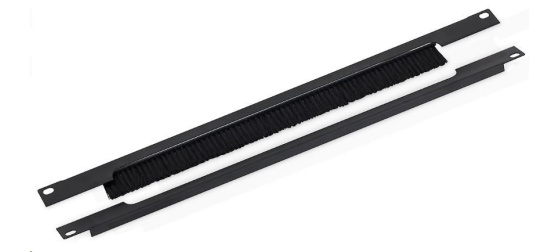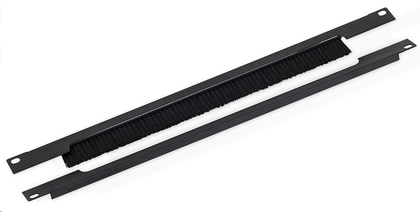 19" průchozí panel 1U rozdělený horizontálně, kartáč, otvor 350 x 21 mm.