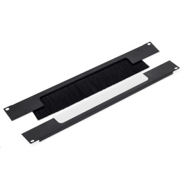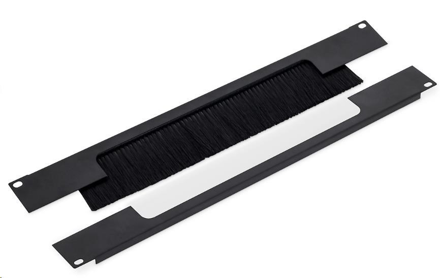 19" průchozí panel 2U rozdělený horizontálně, kartáč, otvor 330 x 55 mm, černý.