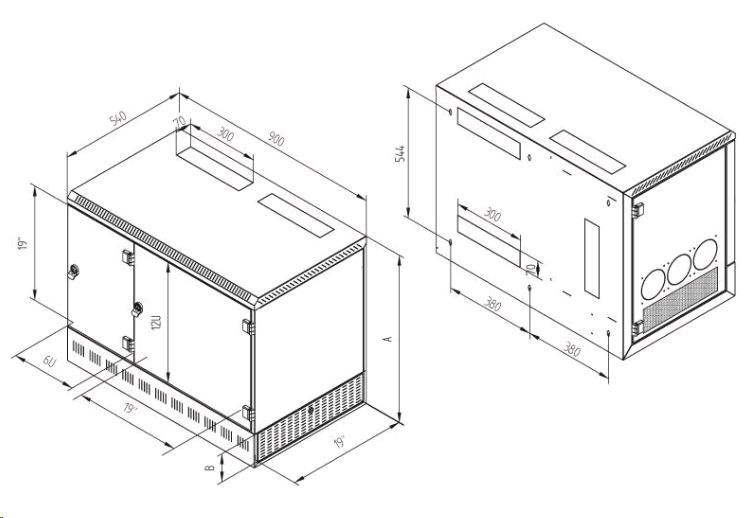 Chlazení provětráváním díky perforaci skeletu a bočních dvířek je možno podpořit instalací ventilátorů pro nástěnné rozvaděče (RAX-CH-X07)