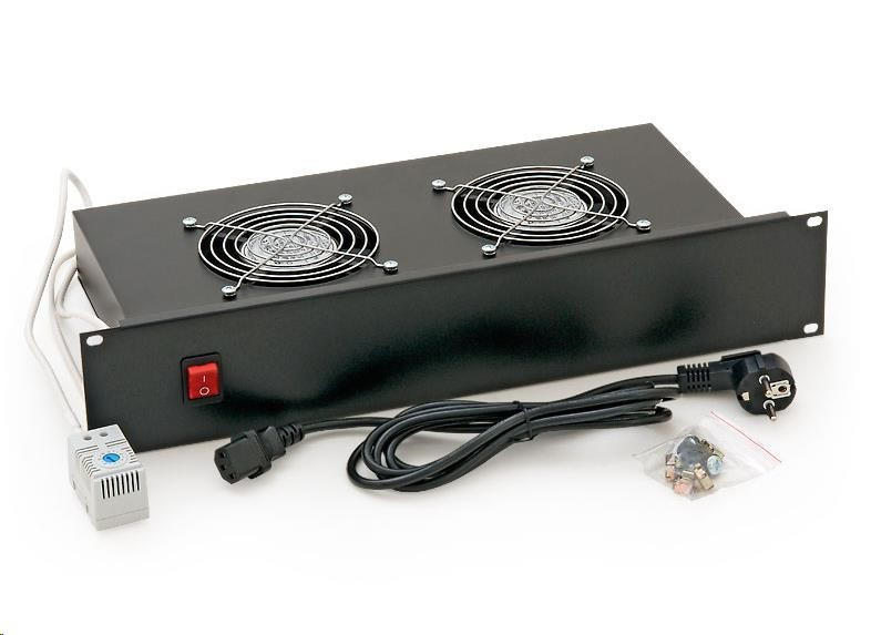 TRITON 19" ventilační jednotka, 2 ventilátory-230V/70W, termostat, černá