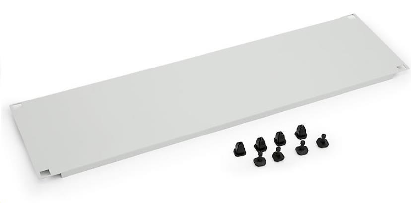 19" záslepka, 1U, plastový zámek s logem Tritón, šedá.