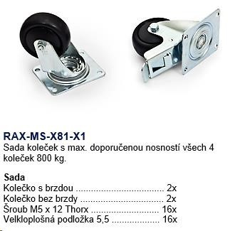 Max. nosnost sady 4 ks koleček je 800kg včetně rozvaděče
