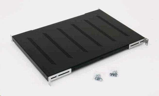 Police s perforací 19", 1U/450mm, nosnost 150kg, černá.Více