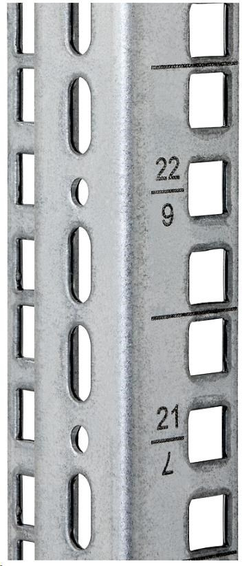 Vertikální lišta 9U. Značení unitů je provedeno laserovým popisovačem.
