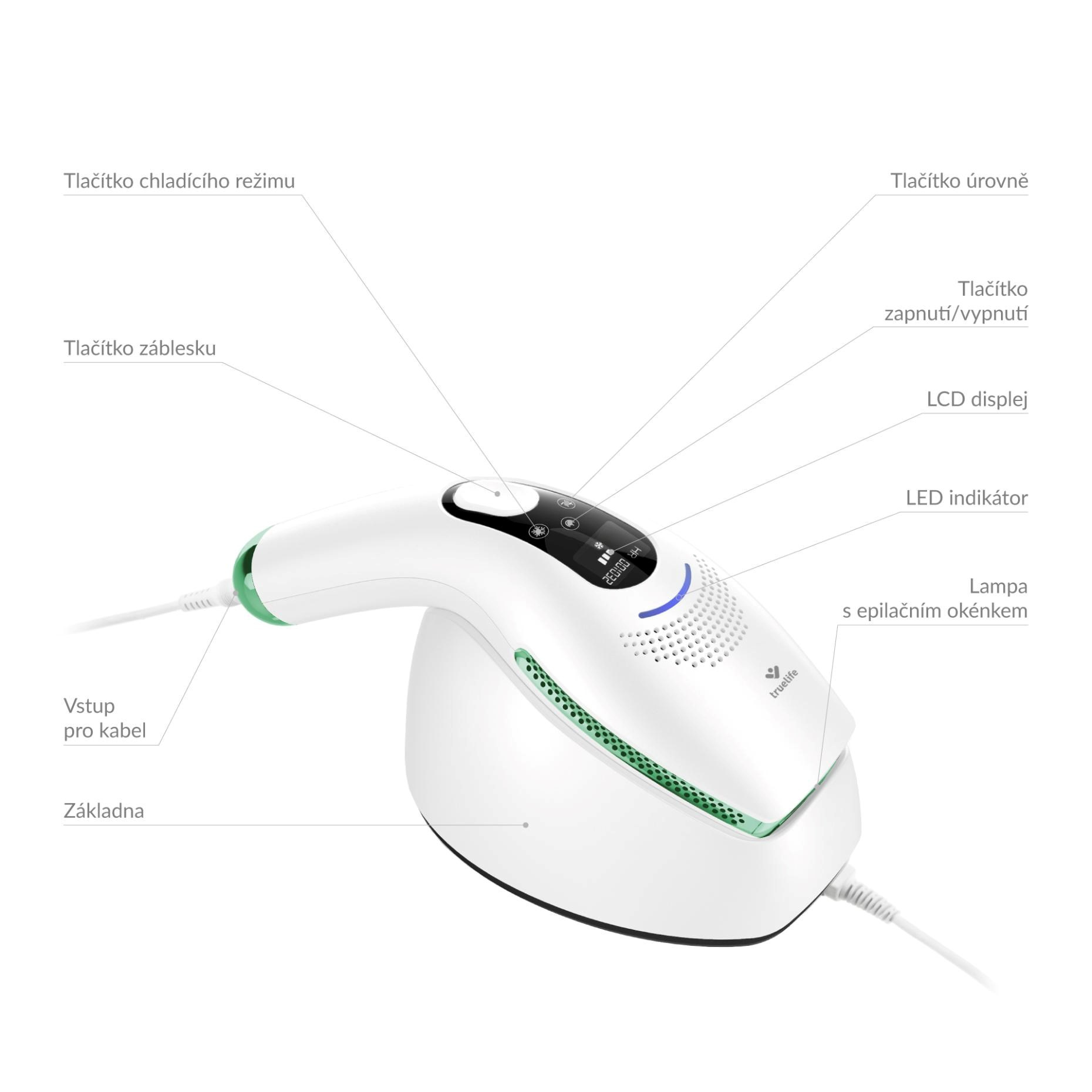 Epilátor TrueLife BELLE IPL EB5 využijete kromě samotné epilace i k dalším aplikacím. Stačí pouze vyměnit lampu. K dlouhodobému a účinnému odstranění chloupků vám poslouží HR lampa, Nejednoho člověka trápí akné. Pokud chce mít obličej čistý a hebký na dotek, doporučujeme použít AC lampu. Pokud chcete svoji pokožku omladit, pomůže vám s tím SR lampa. Všechny lampy jsou součástí balení. Nemusíte si tedy nic dokupovat. Určitě oceníte i praktický stojánek.