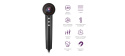 Fén je vybaven kulatým barevným LED displejem, který přehledně zobrazuje informace o fénování – zvolený mód, rychlost a ionizaci.