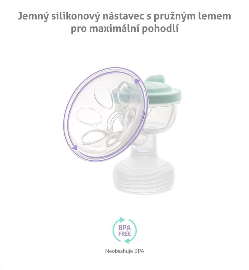 Odsávačka je vyrobena z kvalitního a zdravotně nezávadného plastu a silikonu bez BPA sloučenin.