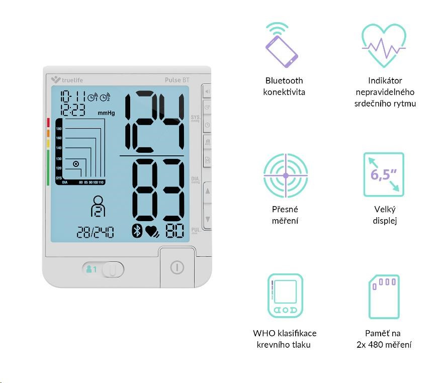 Popis TrueLife Pulse BT - tonometr/měřič krevního tlaku