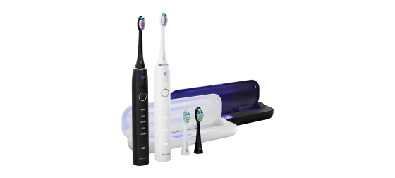 Zdravý úsměv je vizitkou nás všech. S balením dvou sonických kartáčků TrueLife SonicBrush Clean70 UV Duo bude péče o zuby a dásně nejen důkladná, ale navíc i příjemná. Každý z kartáčků čistí zuby rychlostí až 90 000 pohybů za minutu, čímž odstraní až 12× více zubního plaku než manuální kartáček. Sonická technologie SonicTrue® jemnými vibracemi čistí plošky zubů a díky víření vody s pastou vytváří mikrobublinky, které proniknou i do mezizubních prostor. Tlakový senzor s technologií SmartPressure® hlídá ideální tlak a varuje před nadměrným zatížením dásní či skloviny. Dobíjecí pouzdro s UV sterilizací efektivně ničí až 99,9 % bakterií a virů na hlavicích. Kartáčky vydrží až 70 dní na jedno nabití, disponují 5 režimy čištění a 2 typy hlavic (Standard a Sensitive). Chytrý časovač hlídá doporučené 2 minuty čištění a funkce paměti uchová poslední zvolený režim. Díky vysoce citlivému vibračnímu senzoru se kartáček automaticky aktivuje a rozsvítí, jakmile jej vezmete do ruky. Speciální jemně pogumovaná povrchová úprava rukojeti je příjemná na dotek a zabraňuje klouzání i při použití s vodou.