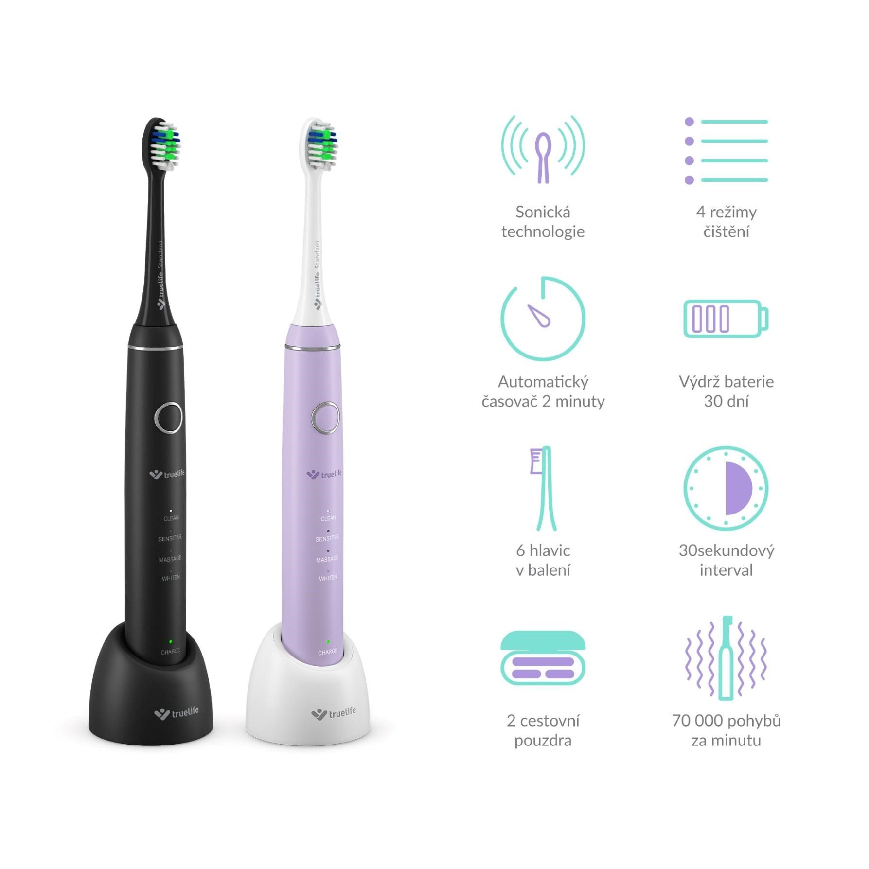 Hlavice kartáčků kmitá rychlostí 70 000 pohybů za minutu. Jemné vibrace nedají šanci zubnímu plaku, pigmentovým skvrnám, ani bakteriím. Sonická technologie SonicTrue® je oproti rotačním kartáčkům šetrnější k zubní sklovině. Kartáček zároveň víří pastu s vodou, vhání je do mezizubních prostor, a tím je pomáhá čistit.