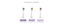 S kartáčkem SonicBrush Compact Lavender zvládnete kompletní dentální hygienu. Součástí balení jsou 3 náhradní hlavice různých typů – Standard pro běžné čištění, Sensitive pro citlivější zuby a Whiten pro bělící efekt. Hlavice vydrží až 3 měsíce používání, poté se začnou třepit, ztrácí účinnost a navíc se na nich hromadí bakterie. Naštěstí jsou hlavice opatřeny modrými štětinami, které po 3 měsících vyblednou a vy tak víte, že je načase hlavice vyměnit.