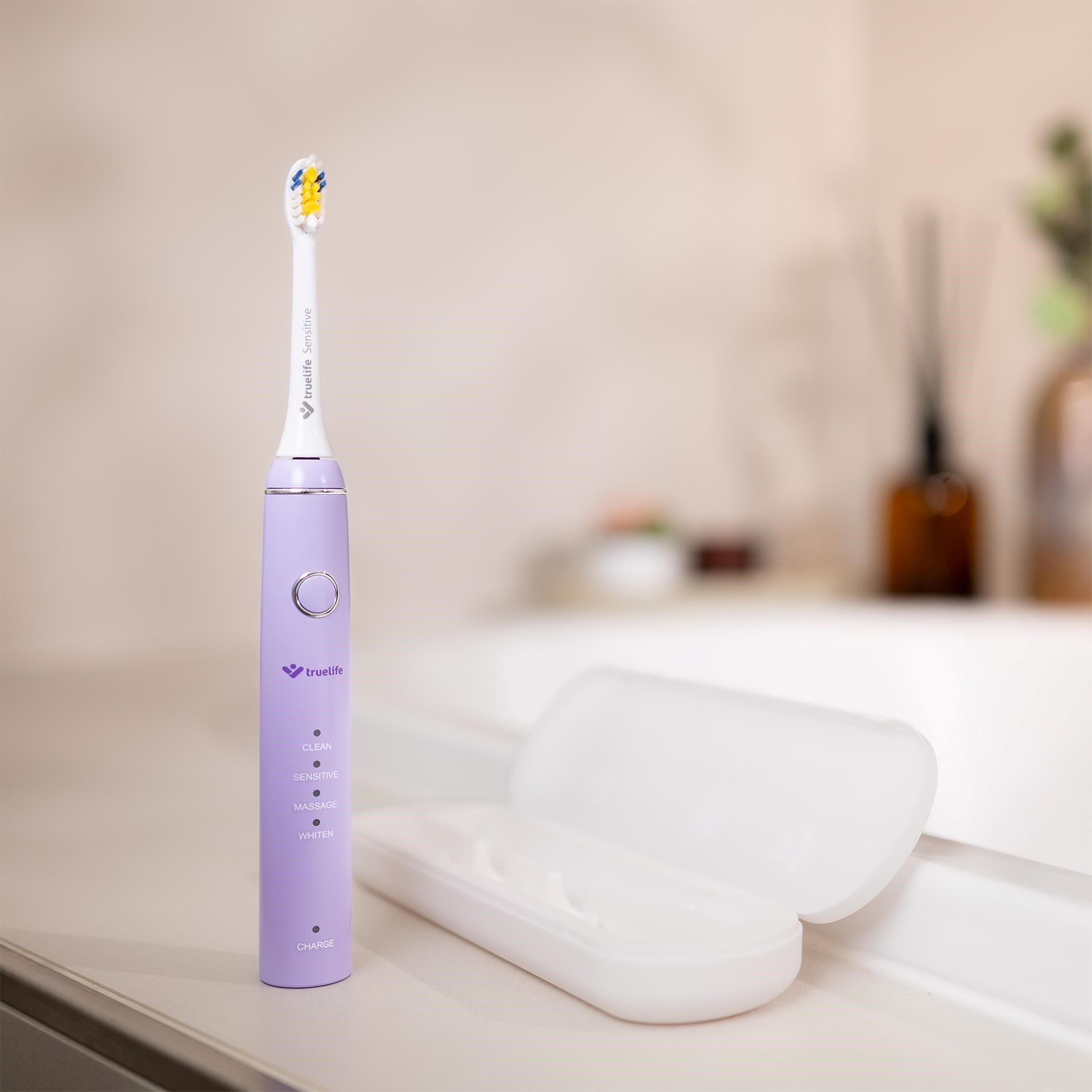 Dopřejte si každodenní rituál ústní hygieny v nové, elegantní barevné variantě Lavender. Stejně jako ostatní modely řady SonicBrush Compact, i tato varianta využívá sonickou technologii SonicTrue® pro důkladné a šetrné čištění zubů. Svěží levandulový odstín dodá vaší koupelně styl a zpříjemní vaši rutinu. Kartáček nabídne až 70?000 pohybů za minutu, čtyři režimy čištění a výdrž baterie až 30 dní. Díky kompaktnímu designu a cestovnímu pouzdru se stane vaším každodenním spojencem doma i na cestách. Součástí balení jsou také tři náhradní hlavice (Sensitive, Standard, Whiten) a cestovní pouzdro.