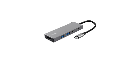 Multiportový adaptér 5v1 pro přidání portů HDMI, USB-C a USB-A k notebooku pomocí jediného připojení USB-C.