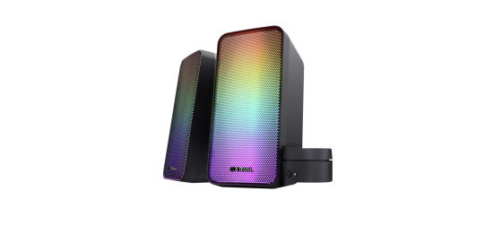 ‘See’ the sound with this stylish speaker set featuring pulsating RGB lighting and clear sound