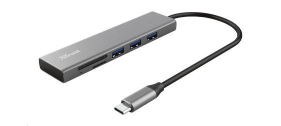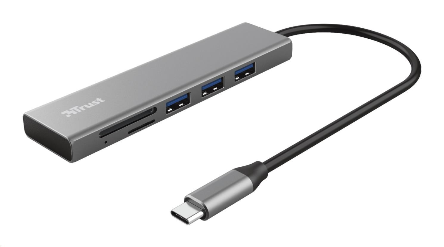 Compact, aluminium 3-port USB hub with (micro) SD card reader and USB-C connection