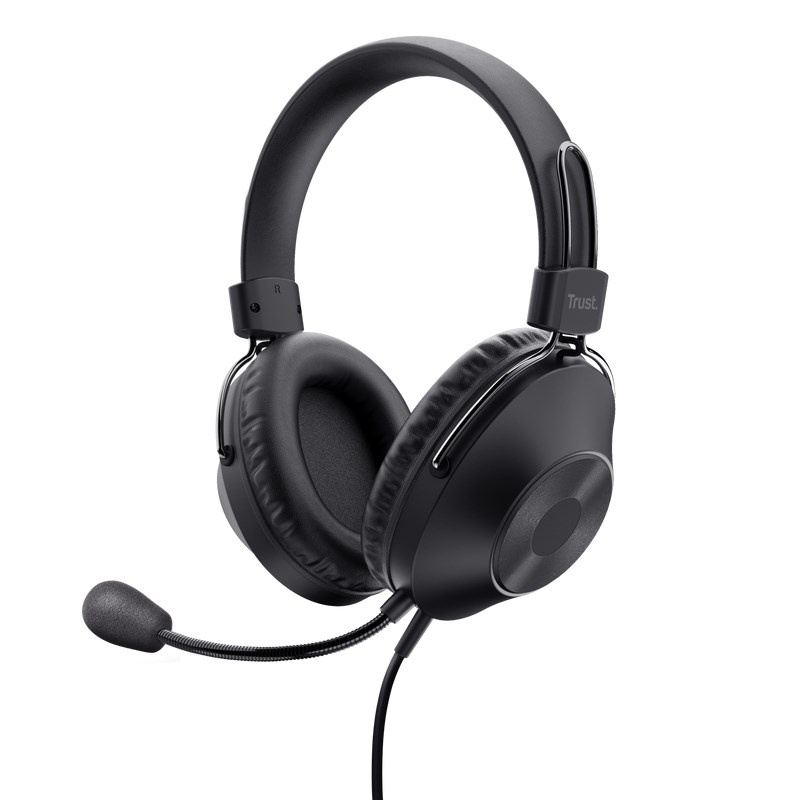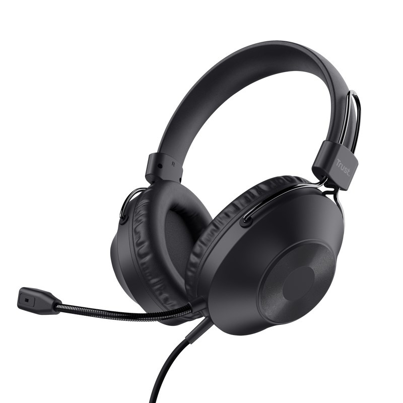 Pohodlná sluchátka přes uši s čistým zvukem, flexibilní mikrofon