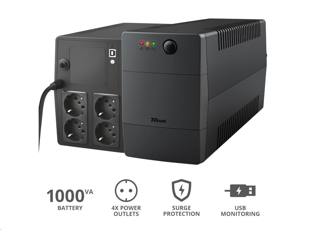 Reliable 1000VA battery back-up UPS with 4 wall power outlets, suitable to power and protect your electronic devices